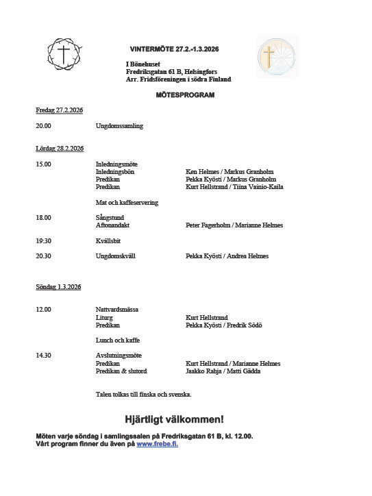 Vintermöte ordnas i Helsingfors 27.2-1.3.2026