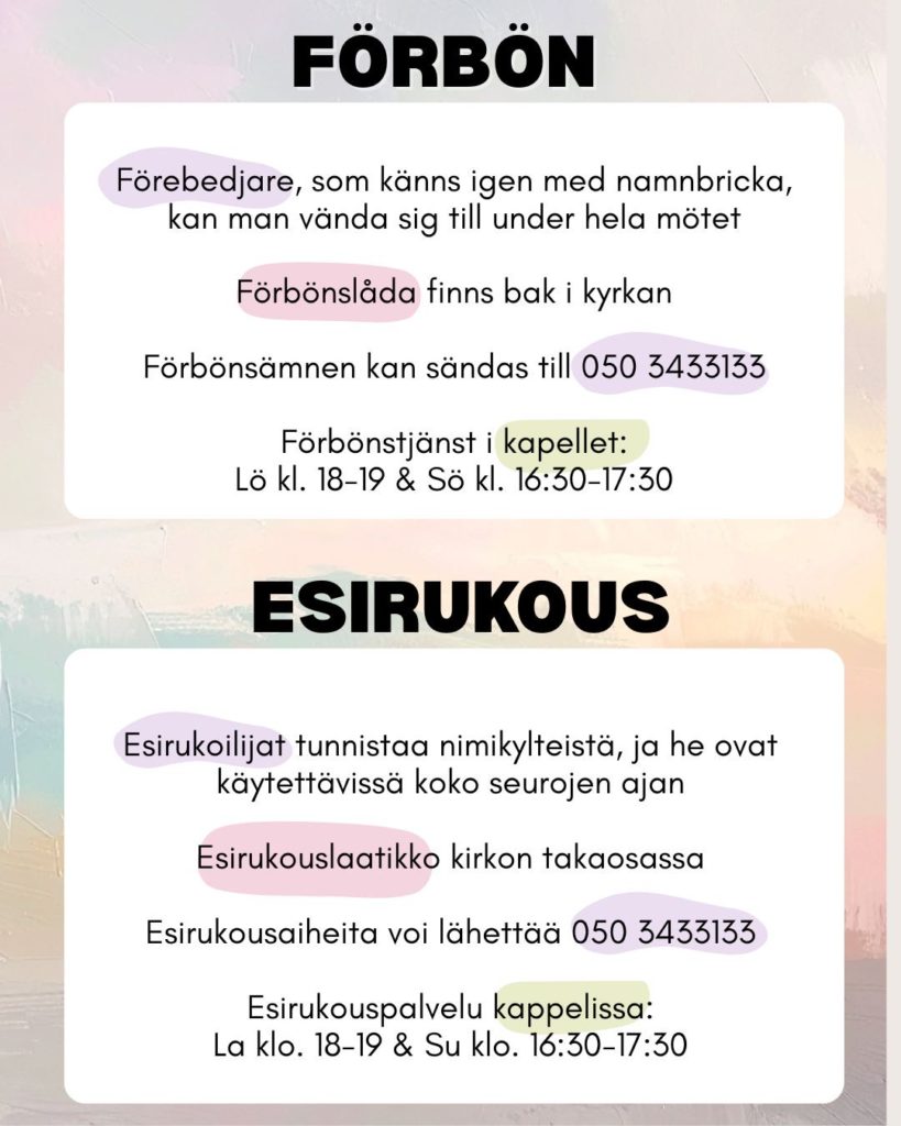 Hem » Evenemang » Vintermöte i Karleby 6-8.2 Vintermöte i Karleby 6-8.2 Time 06—08.02.2026 Location Gamlakarleby stadskyrkaGamlakarleby kyrka, Västra Kyrkogatan, Karleby, Finland Description Välkommen på vintermöte i Karleby 6-8.2.2026 Tema: Kristus världens ljus Plats: Gamlakarleby stadskyrka Arrangör: Närvilä bönehus i samarbete med Karleby Svenska församling Mötet är tvåspråkigt (finska och svenska). Simultantolkning till engelska. Mötena streamas direkt via YouTube LFF Mötena sänds via Radio LFF (98,0 MHz & lff.fi) OBS! FREDAGENS UNGDOMSSAMLING RADIERAS INTE OCH STREAMAS INTE HELLER. Mötena streamas direkt via LFF:s YouTube-kanalMötena radieras via Radio LFF (98,0 MHz & nätradio)